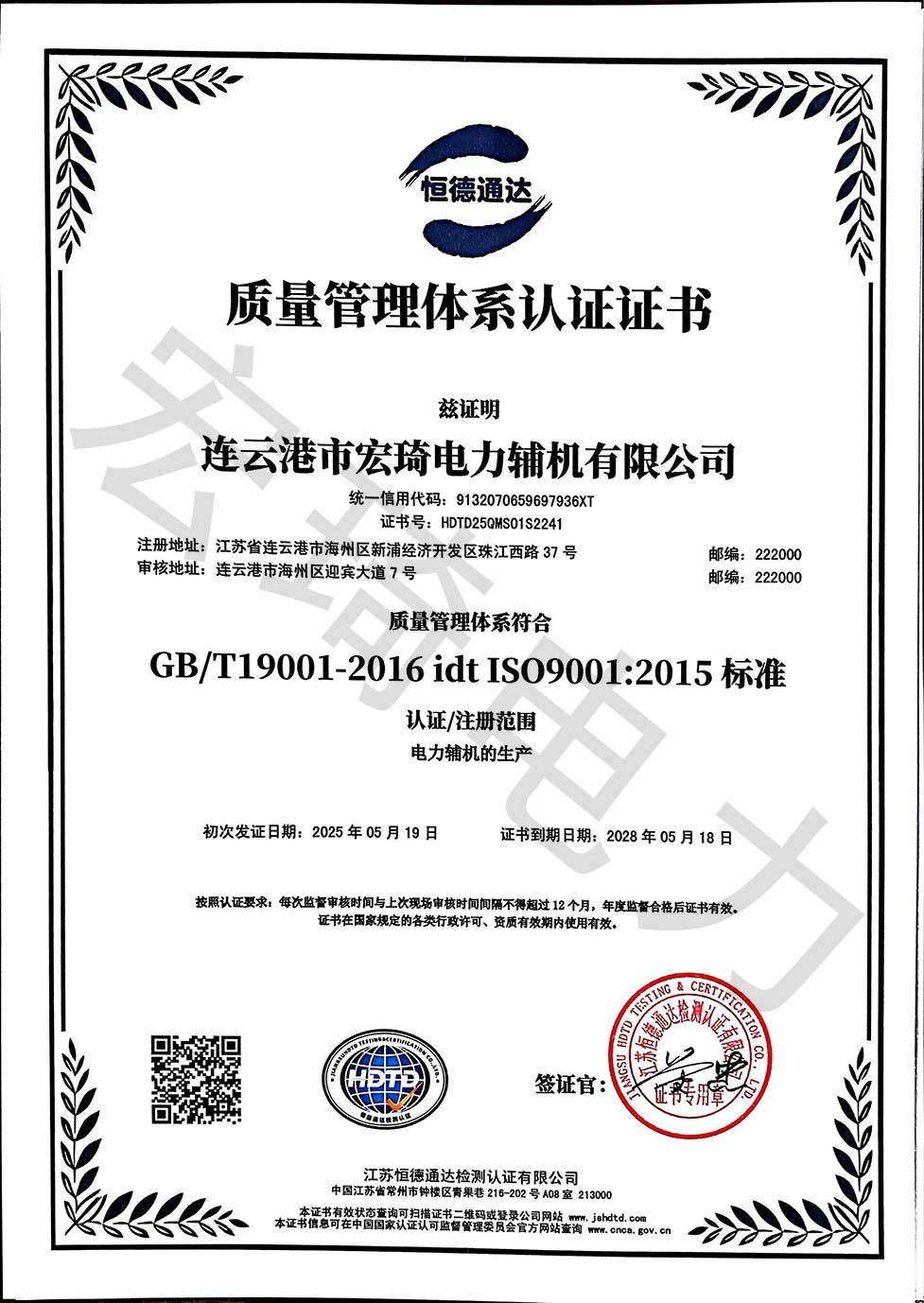 SIO9001質(zhì)量管理體系證書