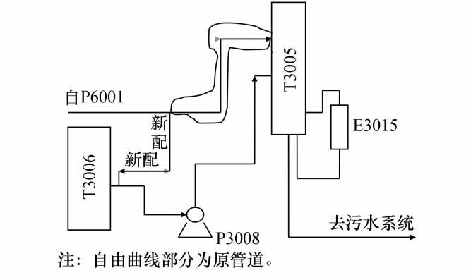 我們將P6001出口酸性水管改向低溫甲醇洗尾氣洗滌塔T3006輸送酸性水,然后又間接通過(guò)洗滌水泵P3008向甲醇水分離塔T300輸送并回收甲醇,*后達(dá)標(biāo)排至污水系統(tǒng)。