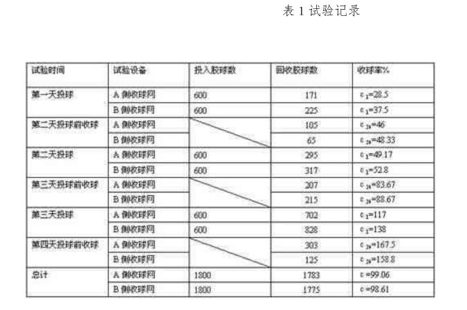 2、連續(xù)試驗(yàn)時(shí)間3天,試驗(yàn)期間收球網(wǎng)板不再打開;