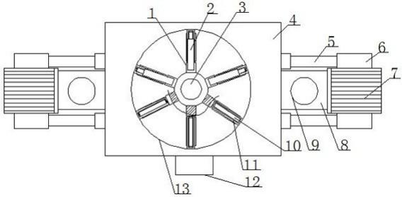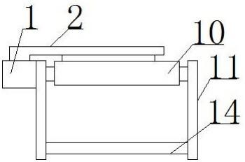 圖中:1、連接塊,2、固定板,3、轉(zhuǎn)軸,4、盛放箱,5、固定桿,6、固定塊,7、電機(jī),8、連接管,9、進(jìn)水孔,10、轉(zhuǎn)筒,11、固定架,12、出水口,13、觀察窗,14、連接桿。