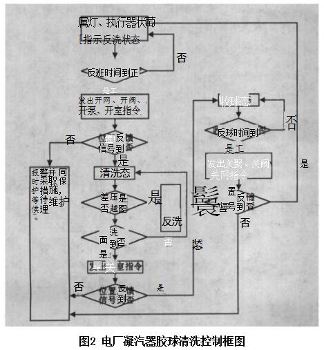 膠球清洗裝置系統(tǒng)在程控或手控運(yùn)行方式且處于清洗過程時(shí),若出現(xiàn)收球網(wǎng)前后差壓越限,系統(tǒng)自動(dòng)轉(zhuǎn)人收球狀態(tài),進(jìn)行反洗,這樣可以清除附在收球網(wǎng)上的污物,保護(hù)收球網(wǎng)。
