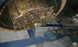 垃圾泥沙無法排出。二級水電站于2005年投產(chǎn)以來,技術(shù)供水工業(yè)全自動濾水器泥砂和大量垃圾無法排出。工業(yè)全自動濾水器內(nèi)的漂浮物、沉積物,特別是塑料袋、草根等雜物不能有效清除。技術(shù)供水工業(yè)濾水器排污管由全自動濾水器本體排污水管(型號為DN80的鋼管制作而成)連接埋在防洪墻內(nèi)的排污水管(型號為DN30的鋼管制作而成)而組成。污水及渣滓經(jīng)技術(shù)供水工業(yè)電動排污濾水器排污管流向尾水處排出。由于設(shè)計不合理,預(yù)埋在防洪墻內(nèi)的排污水管口徑太小,造成管道經(jīng)常堵塞,無法正常排污。但因其處于防洪墻內(nèi)部,位置特殊,無法進行改造。導(dǎo)致工業(yè)電動排污濾水器的排污效果近乎為零,形同虛設(shè)。
