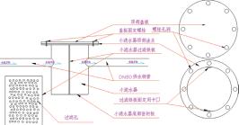 在工業(yè)濾水器出口側(cè)增加一道濾網(wǎng),即DN80管路上加設(shè)一個簡易型工業(yè)濾水器(工業(yè)濾水器),小工業(yè)濾水器使用大口徑鋼管制作而成,將大管底部密閉,頂部選用法蘭片焊接,使用相同的法蘭片制做小工業(yè)濾水器頂部蓋板,頂部蓋板法蘭片中空部分用同等厚度鐵板進行密閉焊接。管中部兩側(cè)分別打孔(用于焊接到DN80管路上),完成小工業(yè)濾水器串聯(lián)到供水系統(tǒng)工作。工業(yè)濾水器內(nèi)設(shè)置鐵板制作的過濾網(wǎng),能有效的起到過濾渣滓的作用。