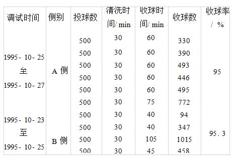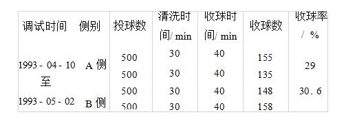 4.2收球網(wǎng)粘球主要是1號機(jī)組的凝汽器膠球清洗裝置的收球網(wǎng),特別是在收球槽局部。