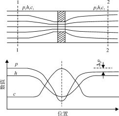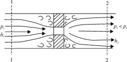 流體在管道中流動,遇到突然變窄的斷面,因阻力而使流體壓力降低的現(xiàn)象稱為節(jié)流.流體節(jié)流過程如圖1所示,取流體節(jié)流前、后穩(wěn)定斷面,動閥等),由于來不及與外界換熱,也沒有功的傳遞,可將其理想化為絕熱節(jié)流.