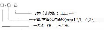 分匯器型號全稱舉例:FH-100/80-Ⅱ型表示主管公稱通徑100mm、支管公稱通徑80mm分匯器、二次改型設(shè)計。