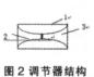 調(diào)節(jié)器由殼體、噴嘴、擴壓段組成(見圖2),噴嘴和擴壓段組成縮放型通道。疏水進入調(diào)節(jié)器后,先在噴嘴中收縮加速,來自信號管的一定量的調(diào)節(jié)汽體由喉部縫隙進入,與疏水相互作用后流出調(diào)節(jié)閥。調(diào)節(jié)閥的作用是控制出口水量,相當于常規(guī)自動控制機構(gòu)的執(zhí)行機構(gòu)。其調(diào)節(jié)原理是:當加熱器水位上升時,傳感器(信號管)內(nèi)水位也隨之上升,導致發(fā)送的調(diào)節(jié)汽量減少,因而通過調(diào)節(jié)器中的兩相流中的汽量減少,喉部有效通流面積增加,疏水量增加,加熱器水位隨之下降。反之亦然。在整個系統(tǒng)內(nèi)存在一種動態(tài)平衡,從而實現(xiàn)加熱器水位的自動控制。1殼體;2噴嘴;3擴壓段
