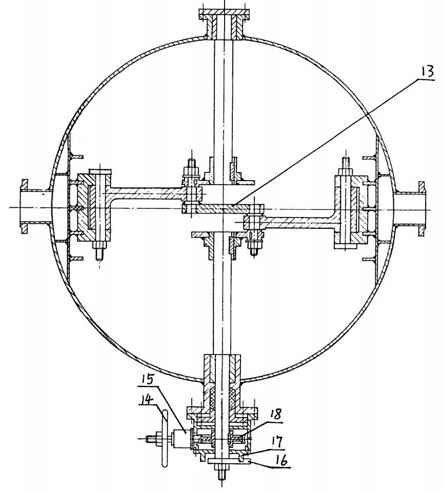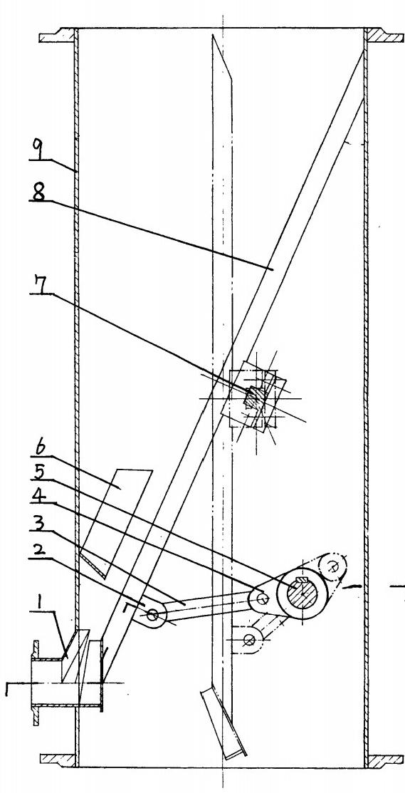 膠球連續(xù)清洗凝汽器的收球網(wǎng),包括收球筒體、網(wǎng)板、轉(zhuǎn)軸、膠球引出管、導(dǎo)流板、傳動(dòng)、執(zhí)行裝置和操縱裝置,網(wǎng)板轉(zhuǎn)軸置于筒體上,網(wǎng)板的下部設(shè)有旋擺支座,其執(zhí)行裝置為鉸鏈四桿機(jī)構(gòu)。